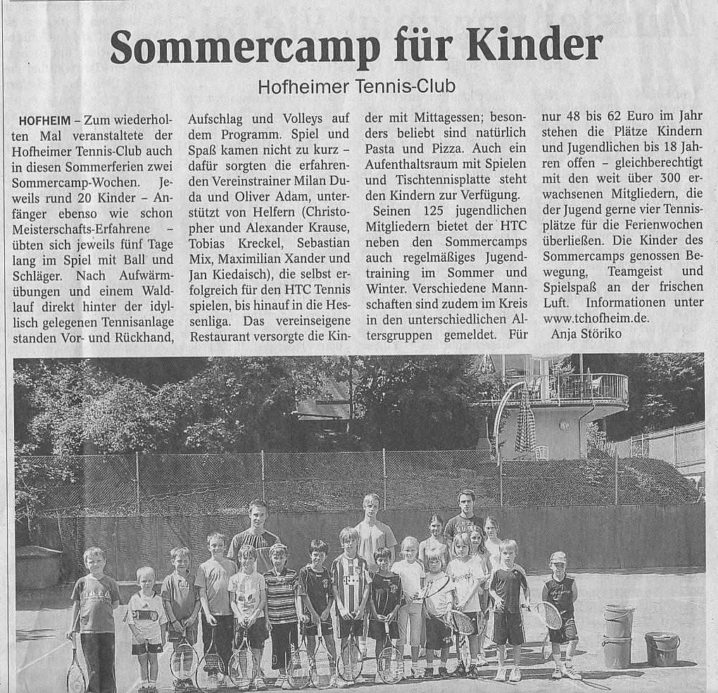 Zum wiederholten Mal veranstaltet der Hofheimer Tennis-Club auch in diesem Sommerferien zwei Sommercamp-Wochen. Jewils rund 20 Kinder...